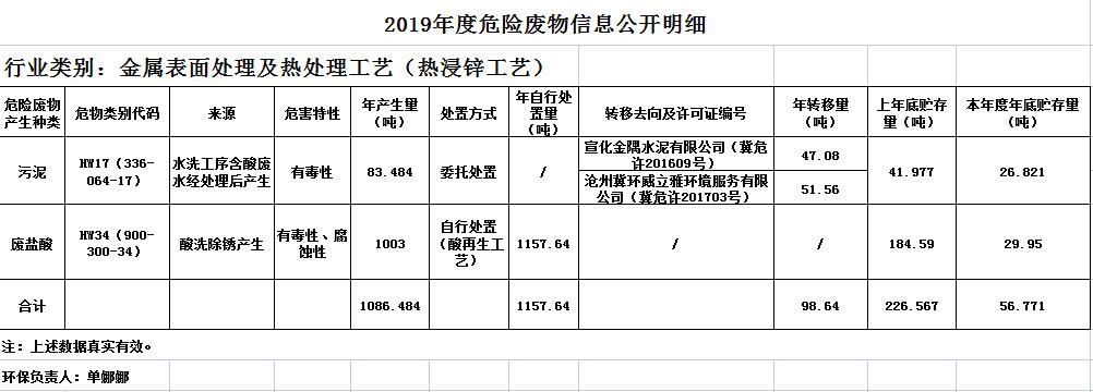為了貫徹落實(shí)《河北省生態(tài)環(huán)境廳關(guān)于進(jìn)一步加強(qiáng)涉固險(xiǎn)廢物企業(yè)信息公開(kāi)的通知》和《中華人民共和國(guó)固體廢物污染環(huán)境防治法》第二章第二十九條規(guī)定,涉危企業(yè)應(yīng)當(dāng)依法及時(shí)公開(kāi)環(huán)境污染防治信息、主動(dòng)接受社會(huì)監(jiān)督,現(xiàn)將我公司2019年度危廢情況做如下公開(kāi):