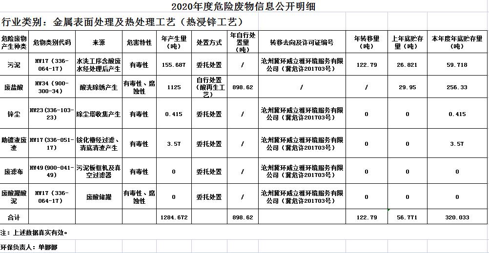 為了貫徹落實(shí)《河北省生態(tài)環(huán)境廳關(guān)于進(jìn)一步加強(qiáng)涉固險(xiǎn)廢物企業(yè)信息公開的通知》和《中華人民共和國(guó)固體廢物污染環(huán)境防治法》第二章第二十九條規(guī)定,涉危企業(yè)應(yīng)當(dāng)依法及時(shí)公開環(huán)境污染防治信息、主動(dòng)接受社會(huì)監(jiān)督,現(xiàn)將我公司2020年度危廢情況做如下公開: