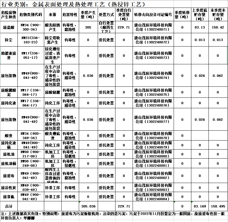 為了貫徹落實(shí)《河北省生態(tài)環(huán)境廳關(guān)于進(jìn)一步加強(qiáng)涉固險廢物企業(yè)信息公開的通知》和《中華人民共和國固體廢物污染環(huán)境防治法》第二章第二十九條規(guī)定,涉危企業(yè)應(yīng)當(dāng)依法及時公開環(huán)境污染防治信息、主動接受社會監(jiān)督,現(xiàn)將我公司2023年第三季度(7-9月份)危廢情況做如下公開: