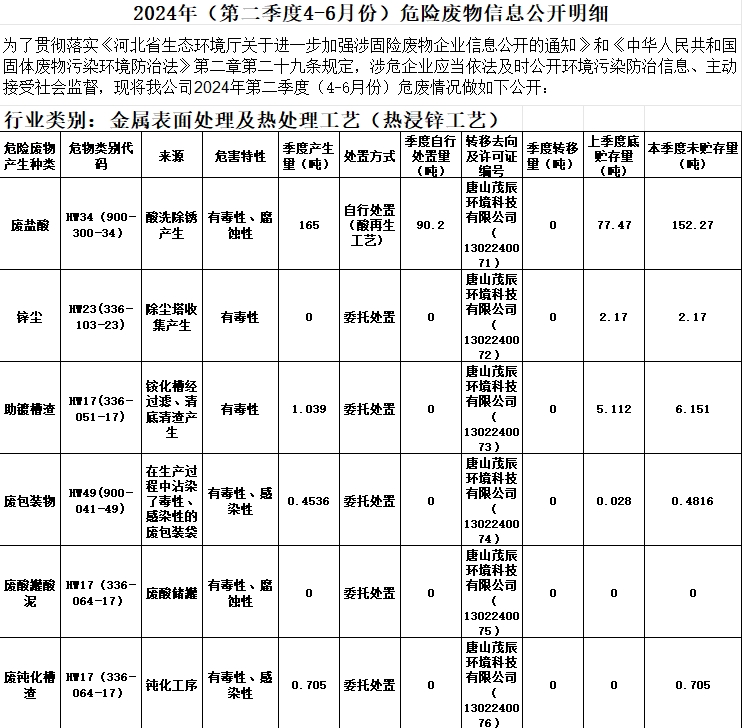 2024年(第二季度4-6月份)危險(xiǎn)廢物信息公開明細(xì)