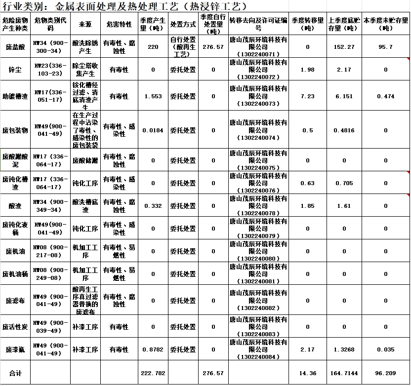 2024年(第三季度7-9月份)危險廢物信息公開明細(xì)